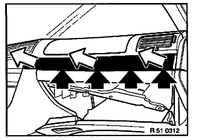 Fit outer plastic nuts with knurling (2) facing trim and inner plastic nuts with hexagon heads (1) facing trim (risk of damage to passenger airbag).
