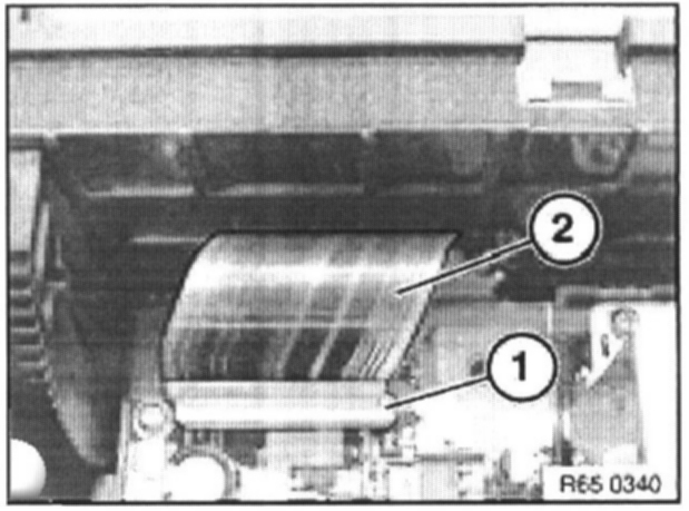 Disconnect plug connection (1) and expose flat ribbon cable (2).