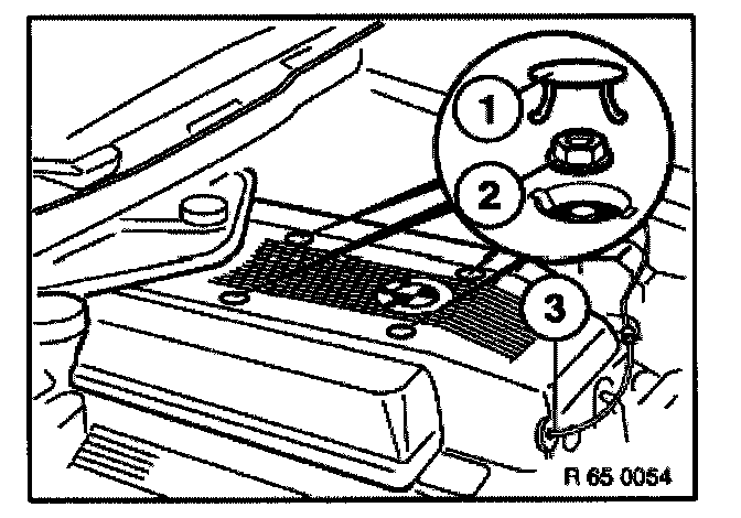 Remove end caps (1), release nuts (2). Remove covering for cylinder head cover.