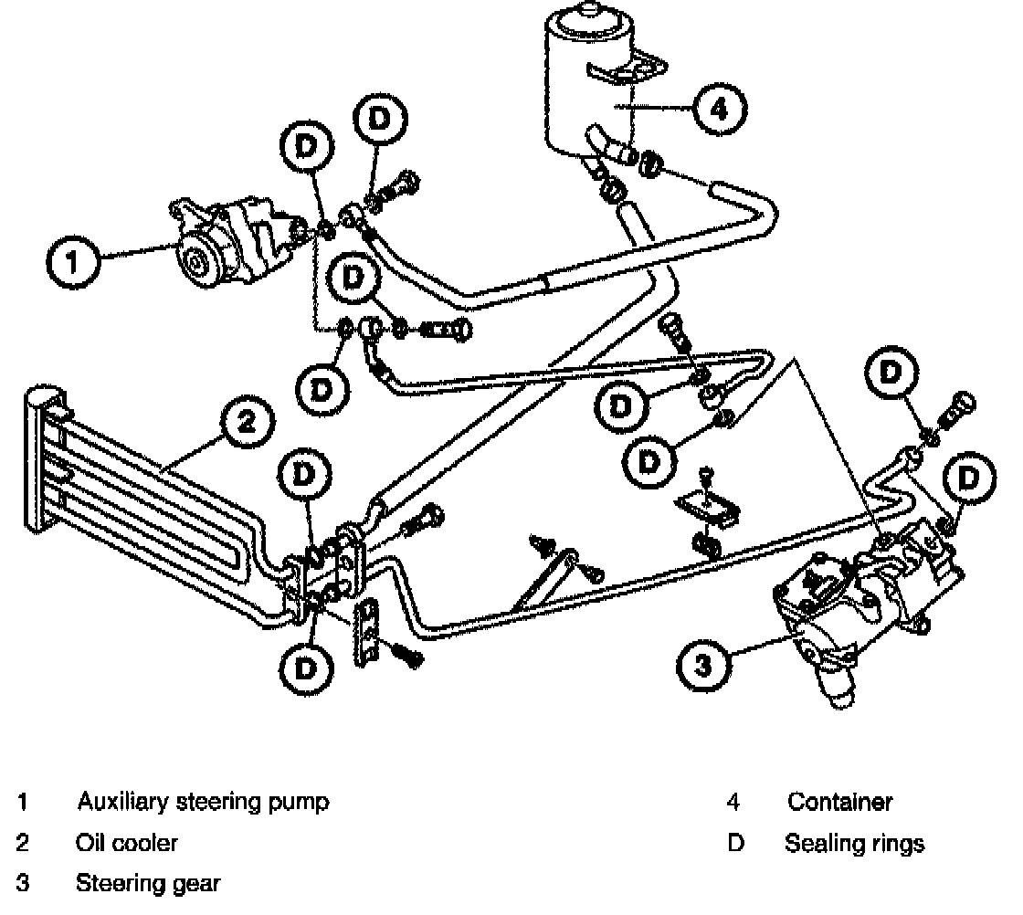 Layout of Power Steering Unit Components and Lines: