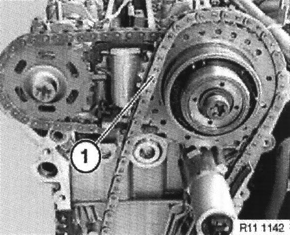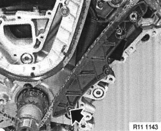 Note: Engines in E53 (X5) have an external oil separator. Grub screw ( 1 ) is not fitted.