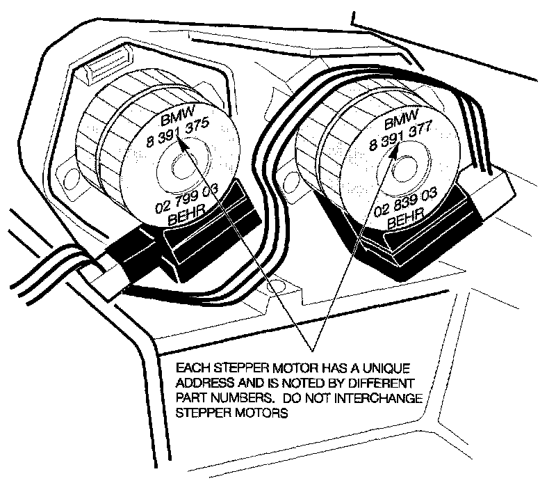 Only the fresh air flap stepper motor is a conventional stepper motor; it is linked to the control panel/module by four circuits.