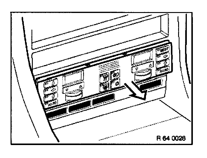 Press out heater control through switch openings towards front and disconnect plug.