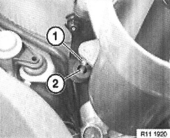 Release screw (2) and disconnect ground connection from oil filter housing.