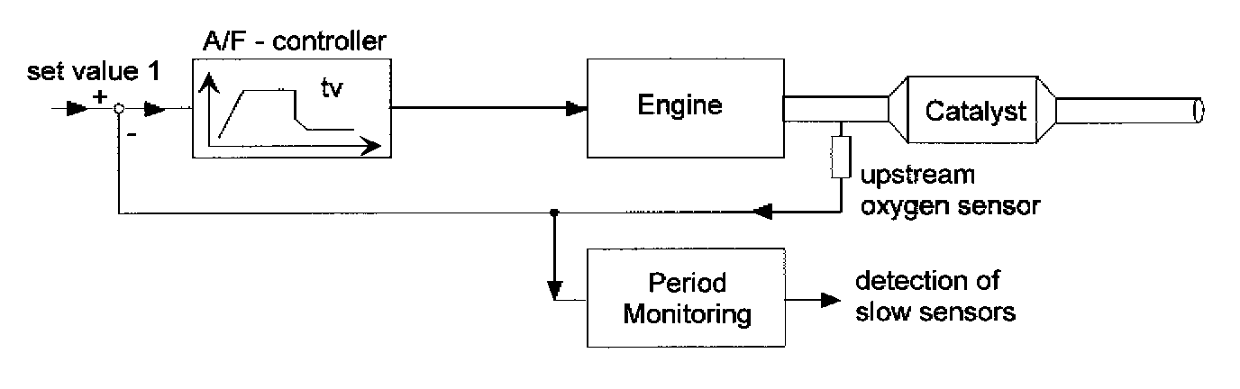 GENERAL DESCRIPTIONThe response rate of the up stream oxygen sensor is monitored by measuring the period of the lambda control oscillations.