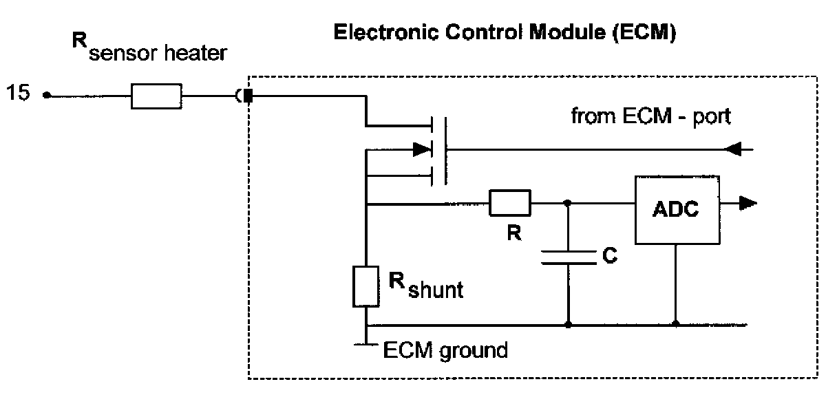 - one shunt for each sensor heater upstream and downstream of catalyst for current measurement
