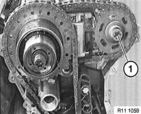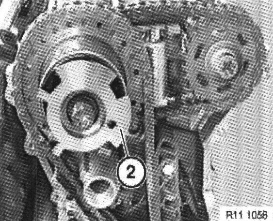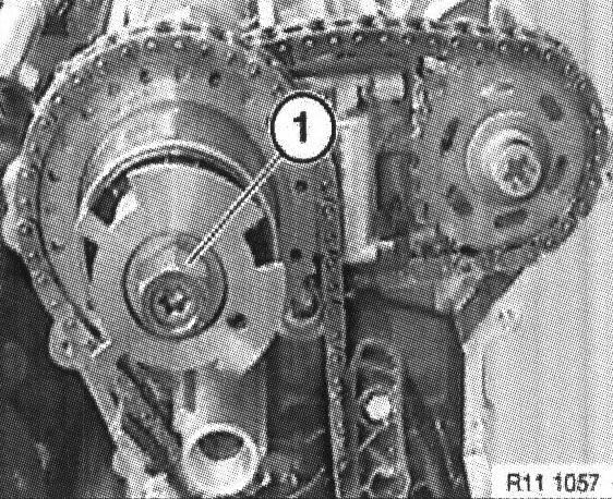 Note: When the timing chain is pretensioned, the camshaft adjustment unit moves and must be reset to the left-hand stop.