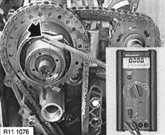 Check left-hand stop of camshaft adjustment unit with acoustic continuity test on multimeter.