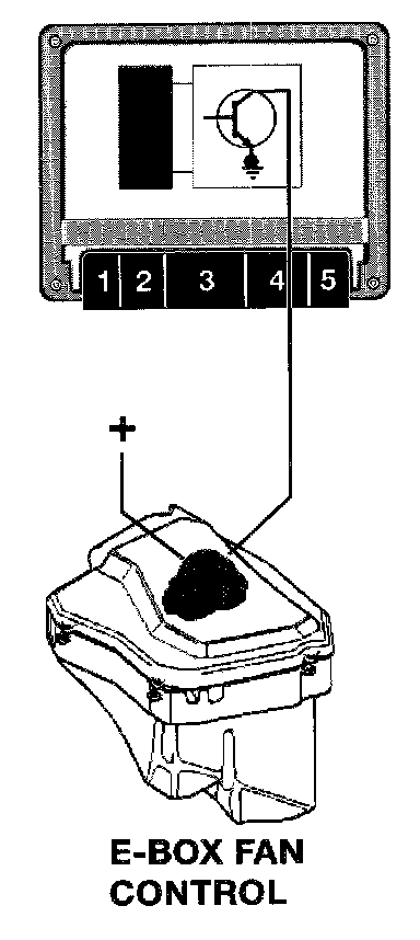 The E Box fan is controlled by ME 7.2. The control module contains an integral NTC temperature sensor for the purpose of monitoring the E box temperature and activating the fan.