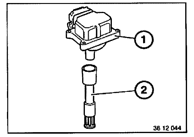 Detach ignition coil (1) from spark plug connector (2).