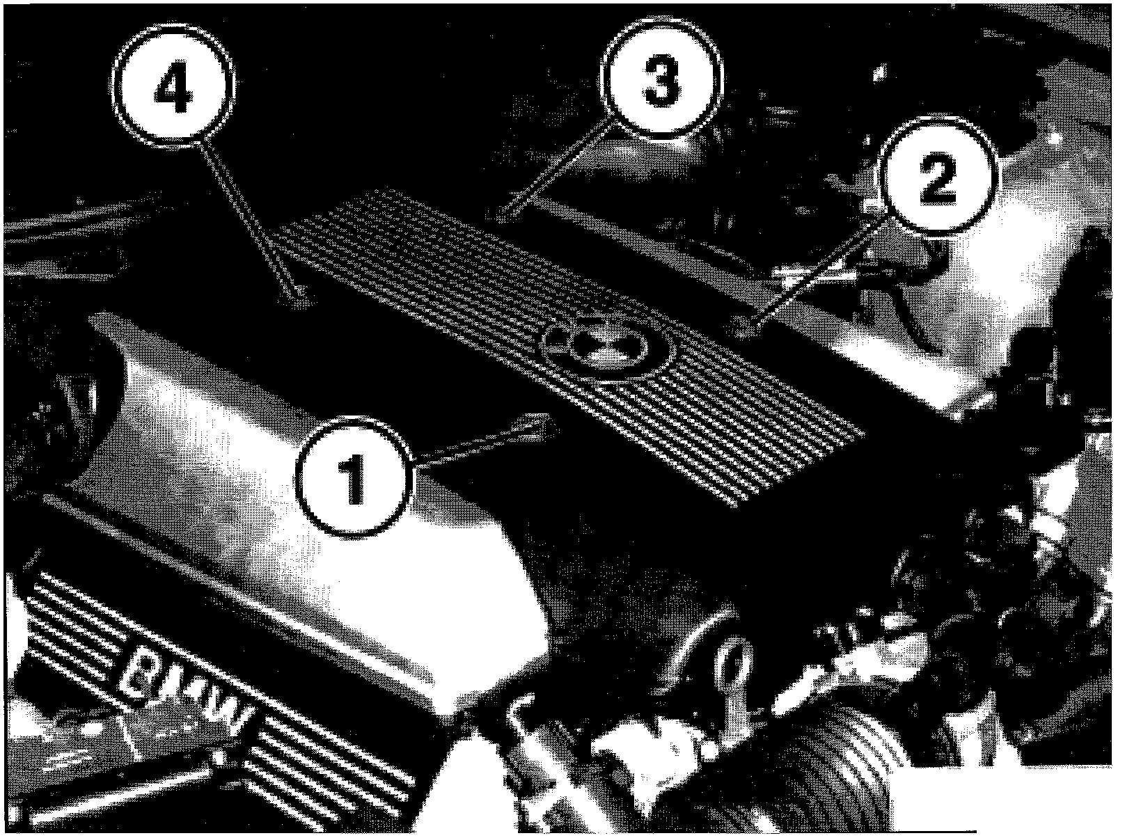 - Open press-studs (1 ... 4) one at a time, at the same time lifting the acoustic cover slightly.