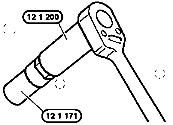 - Tighten using special tool 12 1 171 and special tool 12 1 200 (torque limiter)