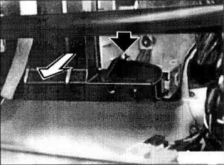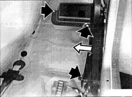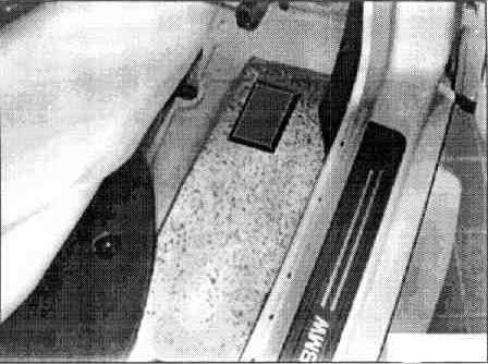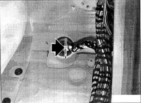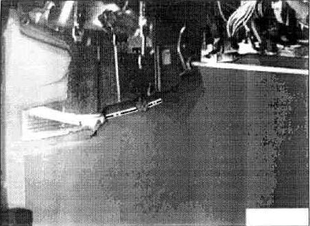 If necessary, cut open the carpeting below the heater at the tunnel. Fold the carpet forwards and tie up to the centre console.