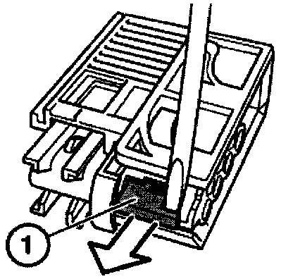 Unclip only the cable that is the same colour as the repair wiring harness. To this purpose, unlock the primary locking unit using the special tool 61 1 132 in the direction of the arrow and pull the cable out of the housing.