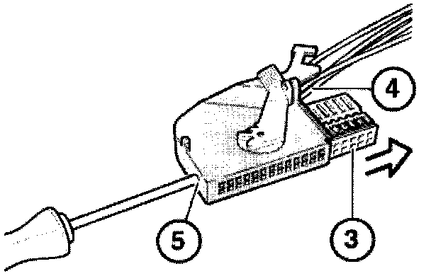 Push the contact carrier (3) through the opening (5) using a screwdriver.