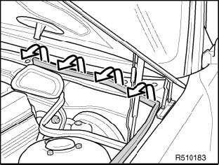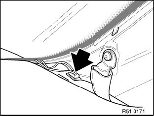 NOTE: The water drainage bore is located here in models fitted with sliding/tilting sunroofs, see one work step previously.