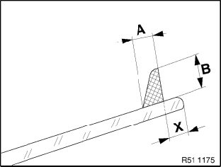 - Maintain distance (X) to edge of windshield, refer to measurement (A) to (C) in next work step.