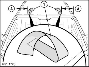 Attach two yellow plastic adhesive tapes (1)(Tesa) to roof at a distance (A) from outer corners.