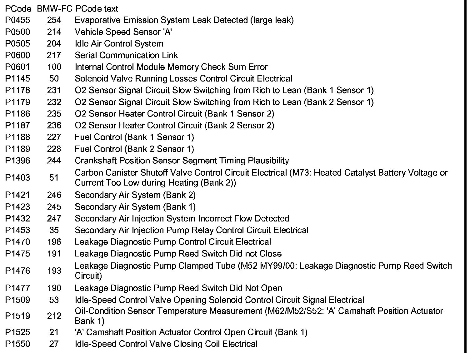 Diagnostic Trouble Code Descriptions