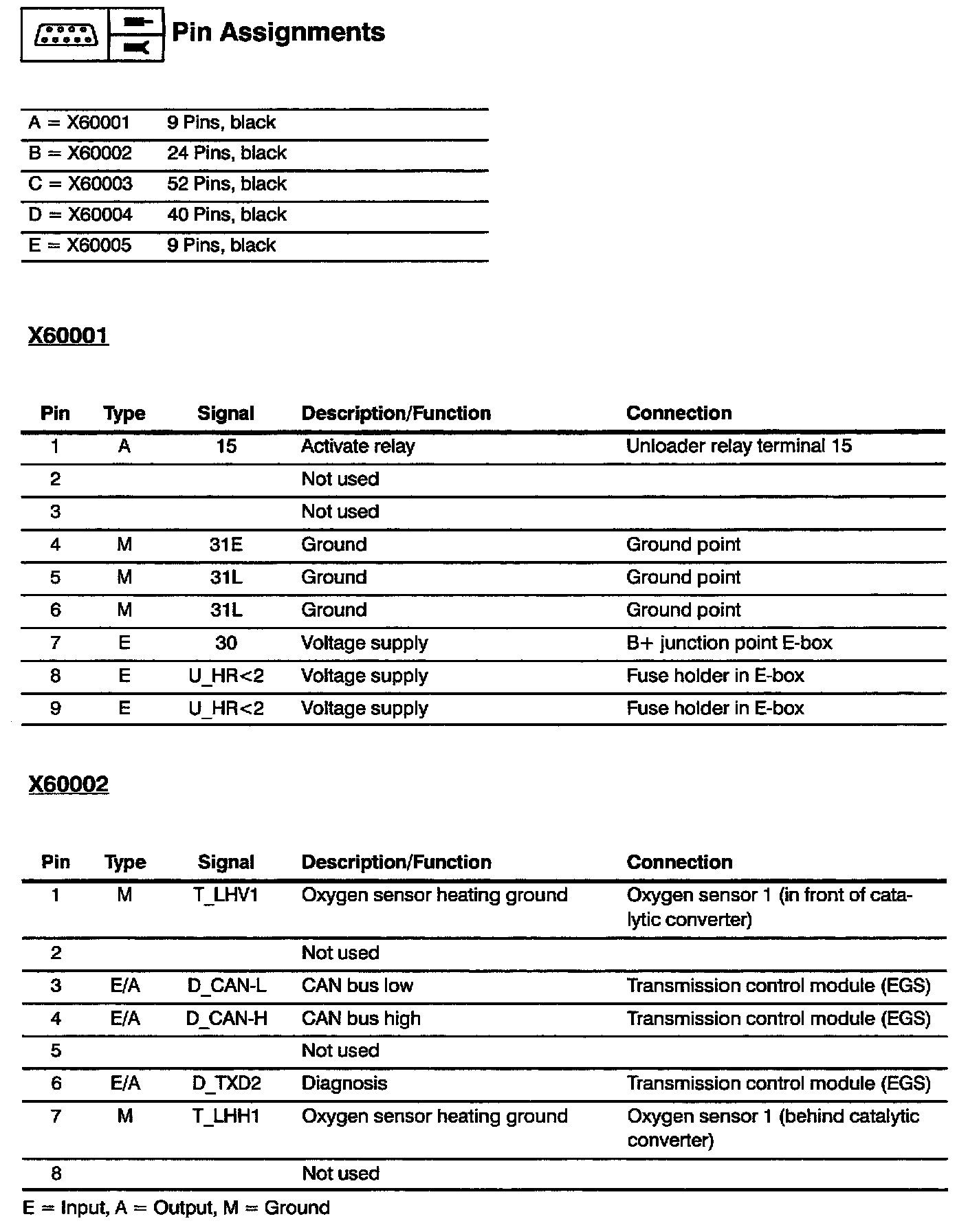 Engine Control System MS42.1: Pin Assignments (Part 4 Of 6):