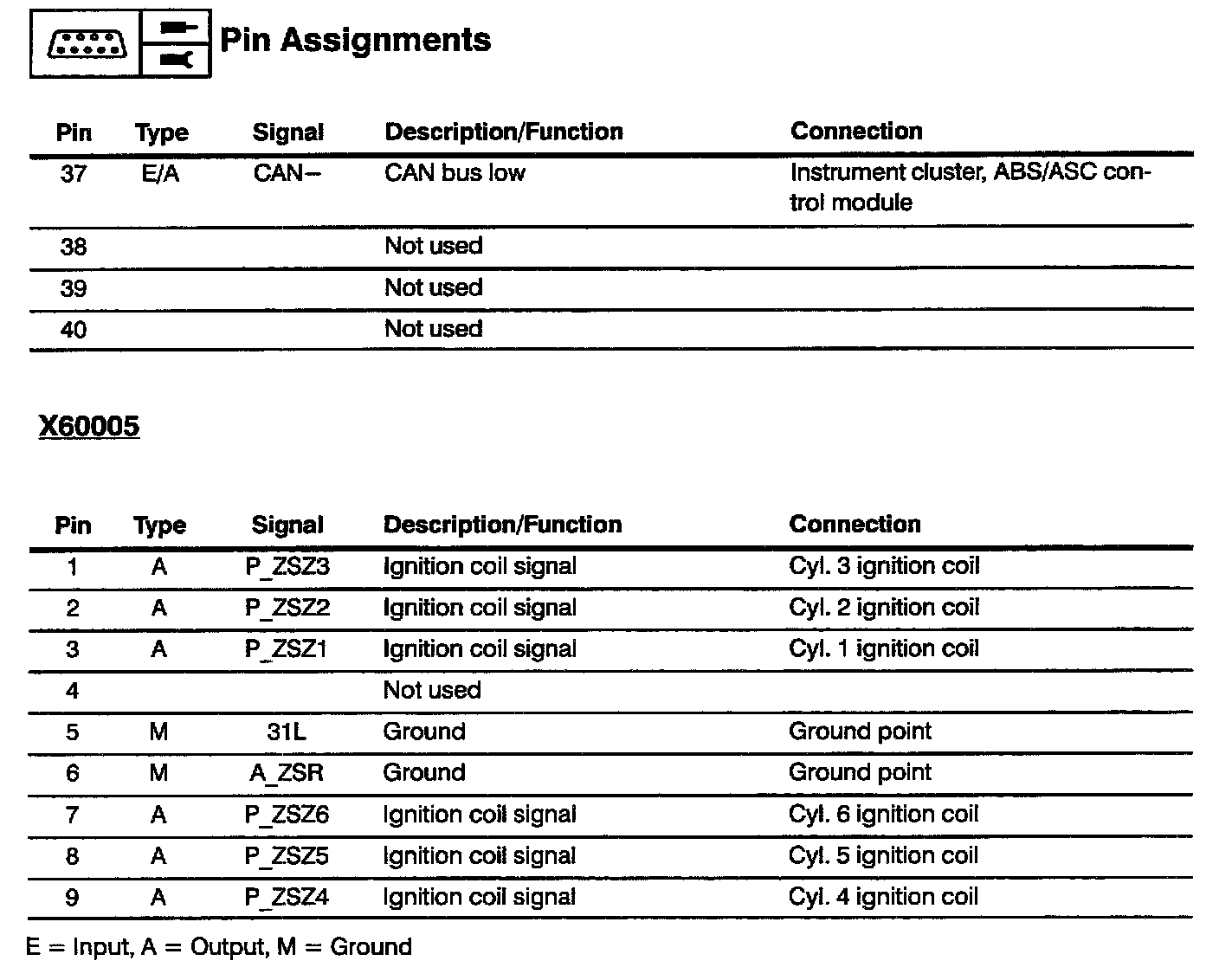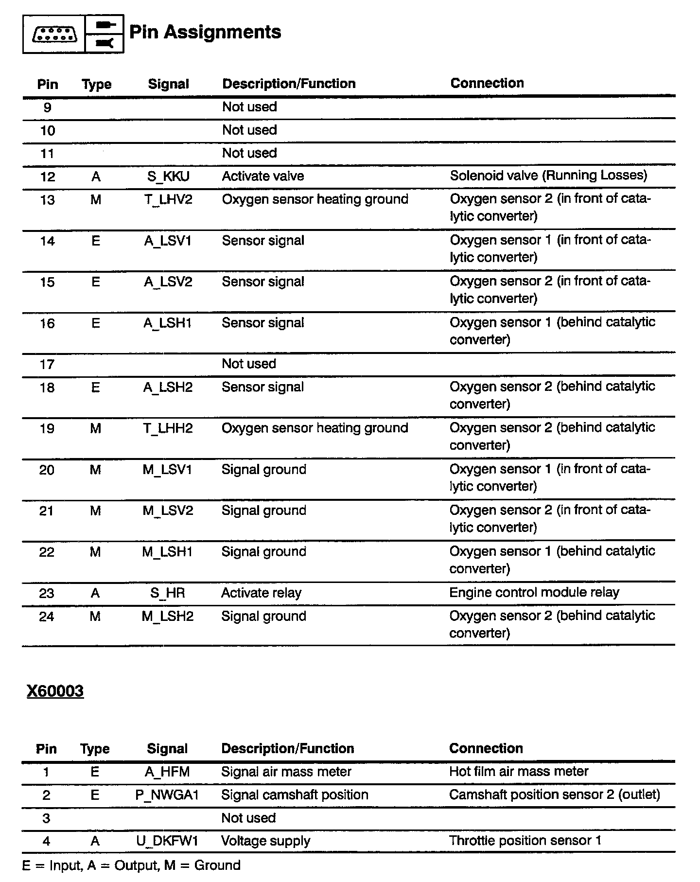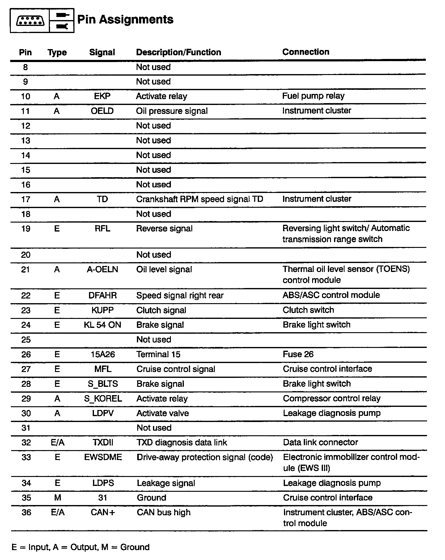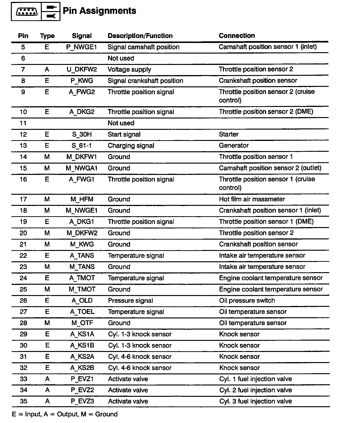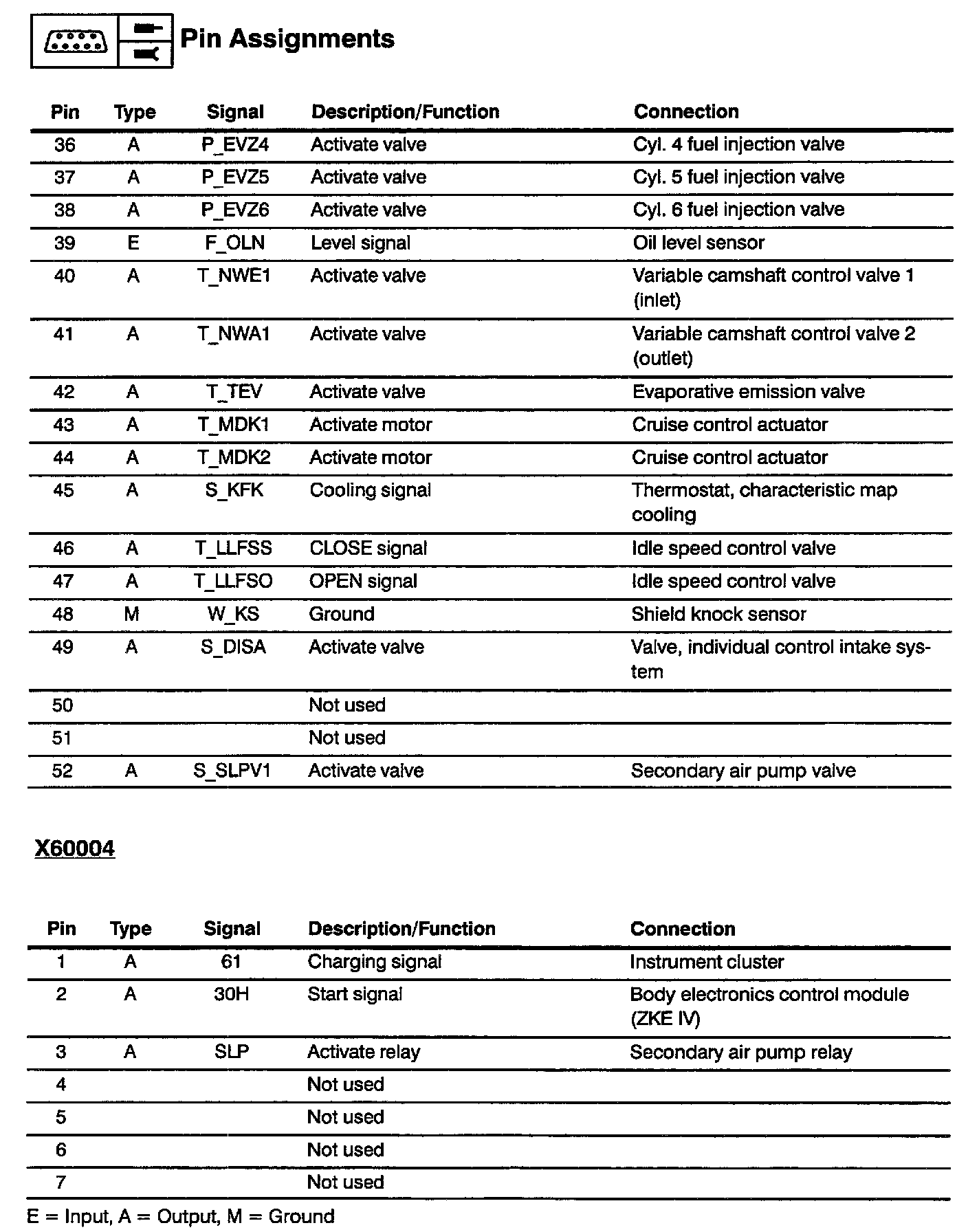 Engine Control System MS42.1: Pin Assignments (Part 6 Of 6):