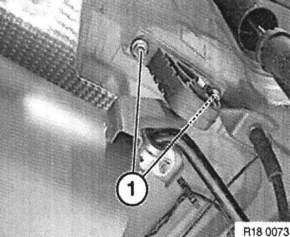 Release hexagon bolt (1) for retaining bracket of rear silencer/muffler on left and right rear axle carriers.