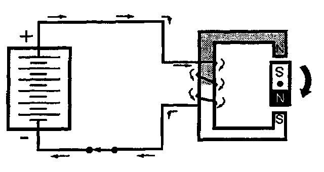 NOTE: In this simple motor, the rotor can turn in either direction to reach its new position.