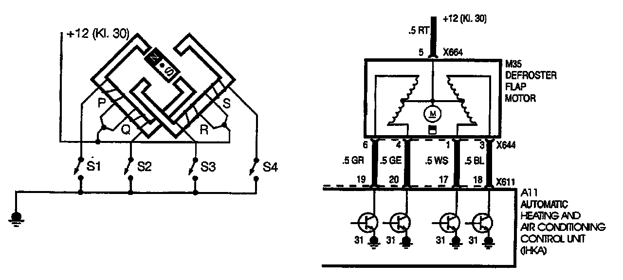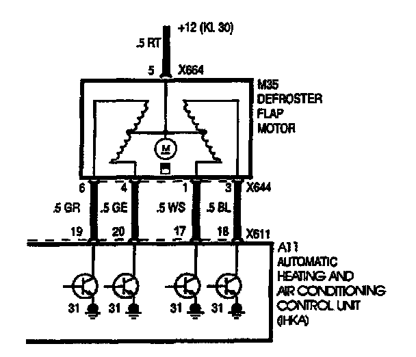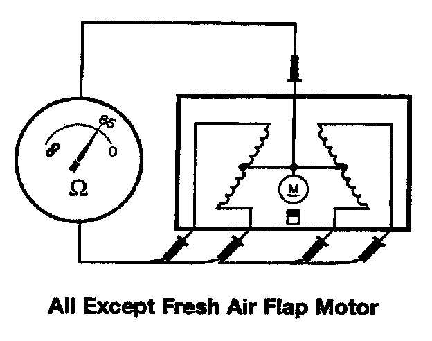 For the fresh air flap motor only on E31, E32, and E34 vehicles, each of the 4 field coils has a resistance of about 26 ohms.
