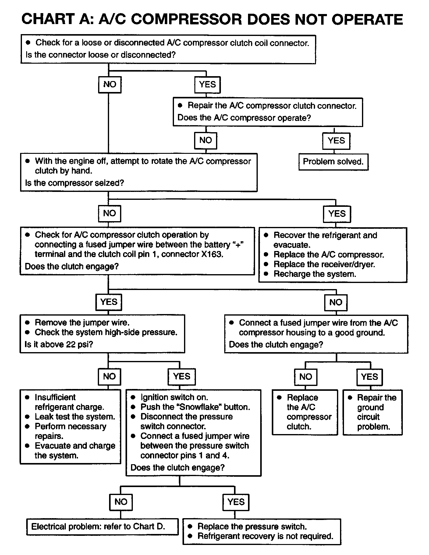 CHART A: A/C COMPRESSOR DOES NOT OPERATE