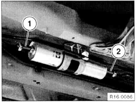 - Disconnect fuel inlet line at points (1) and (2) with special tool 13 3 010.