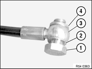 Always fit new banjo bolts (1) and seals (2 and 4) (sourcing reference: BMW Parts Service).