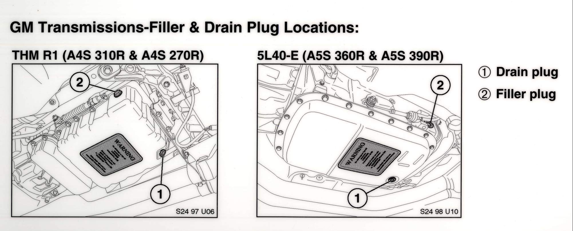 Automatic Transmission Drain and Fill Locations, GM and ZF Models.