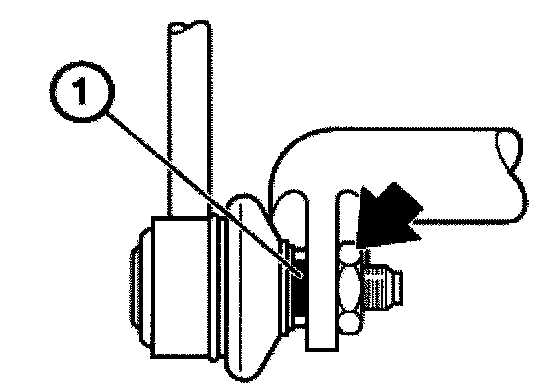 Replace self-locking nuts (1). Fit shim (2). Tightening torque, refer to Specifications.