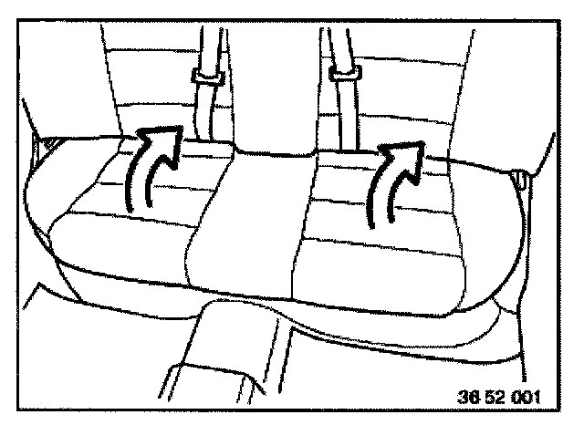 Removing and Installing or Replacing Left or Right Backrest Side Section (Load Through System)- Unclip rear set cushion on left and right and lift out.