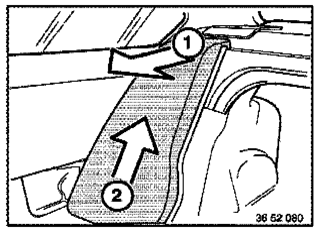 - Unclip (1) the backrest side section and remove in upwards direction (2).