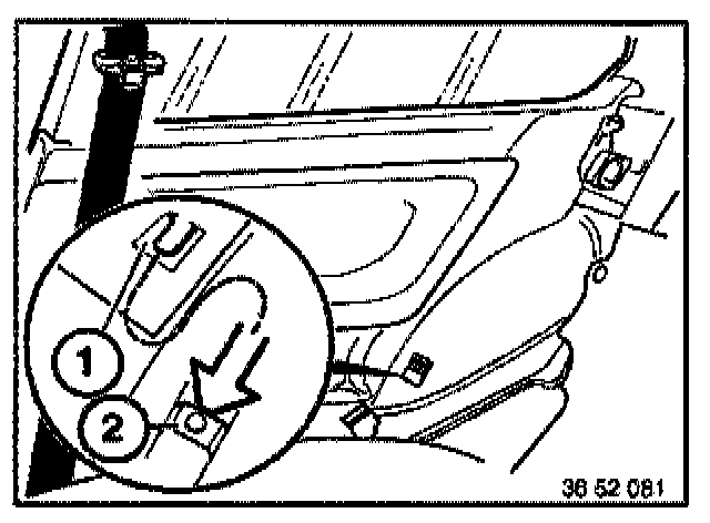 - Install backrest side section with tongue (1) in holder (2).