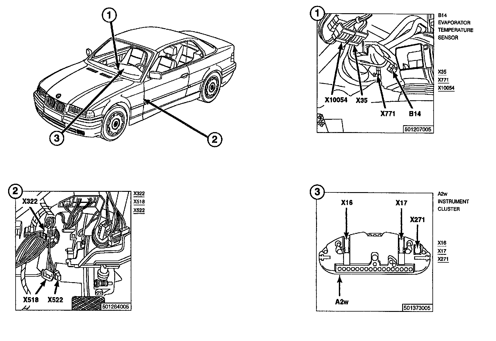Evaporator Temperature Sensor / Switch: Locations