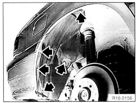- Release screws, remove rear right wheel housing trim.
