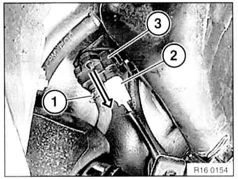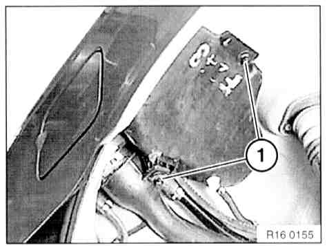 - Open hose clamp (1) and detach hose. Unfasten plug connection (2) and disconnect.