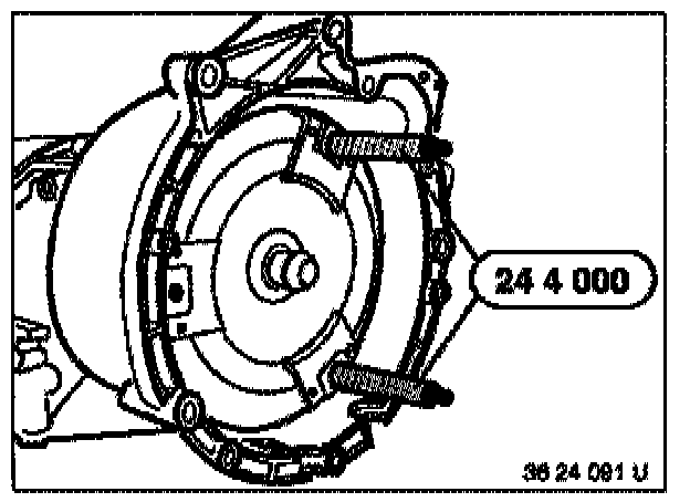 Carefully guide openings on converter into primary pump by turning slightly. For this, use special tool 24 4 000 (assembly handles).