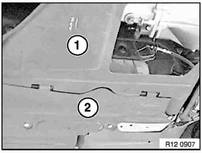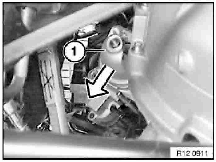 - Pull throttle cable upwards out of retainer (1) and unhook from throttle actuator.