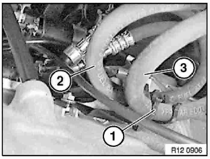 - Detach vacuum line (2) from intake hose.