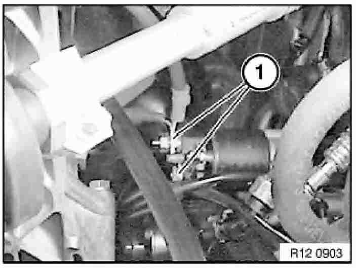 - Release nuts (1) and disconnect lines.