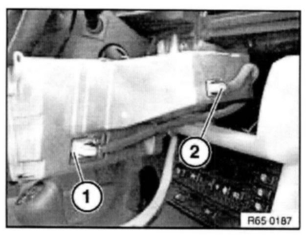 Using screwdriver (1), turn catch (2) as far as possible to right and pull out left side of on-board monitor backwards. The, with screwdriver (1), turn catch (2) as far as possible to left and pull out right side of on-board monitor backwards.