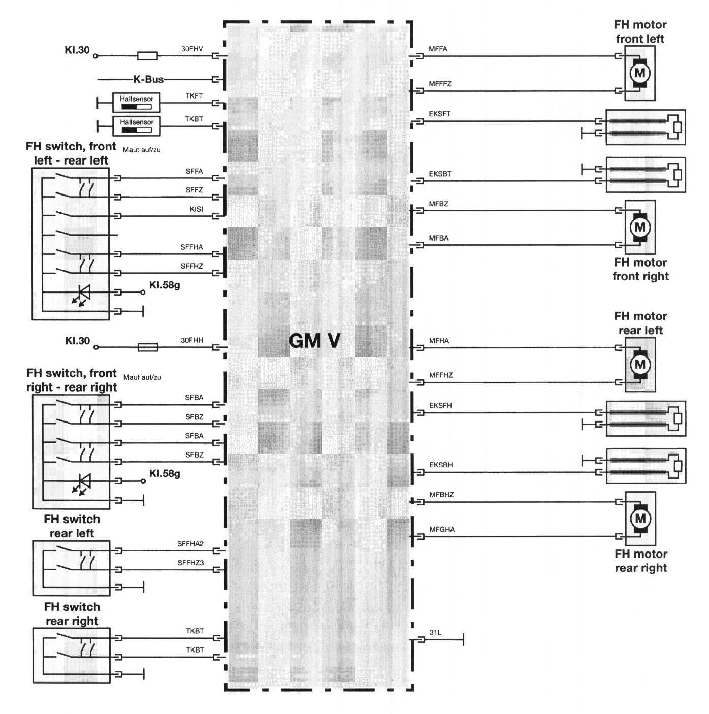 - Control of the front and rear door window motors is carried out directly by the GM.