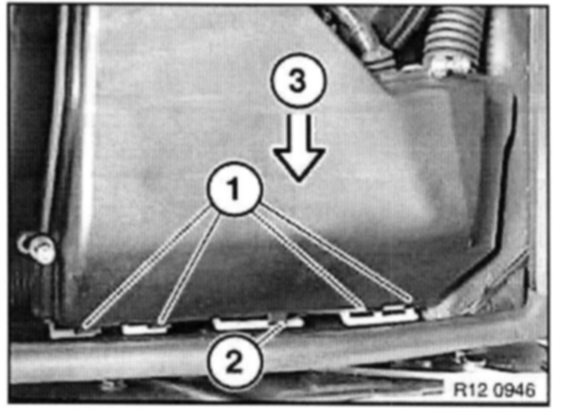 Then correctly install upper stop (2) above hinges on underside of electronics box.