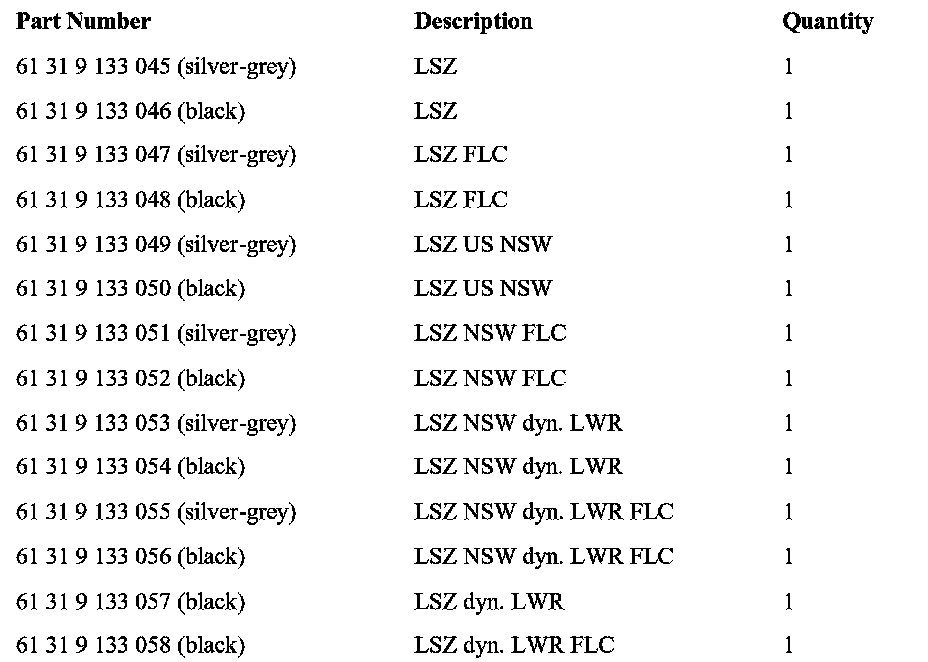 Replace the LSZ with updated parts as listed below. Please compare with EPC before carrying out the replacement.