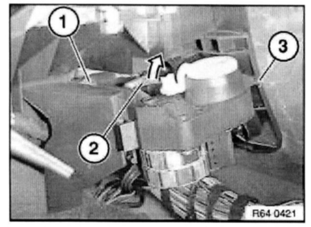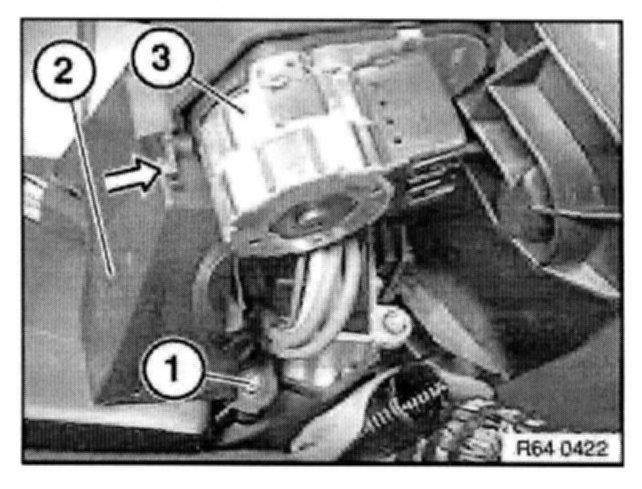 Undo lock in direction of arrow and remove output stage/switch for heater - A/C system blower (3).