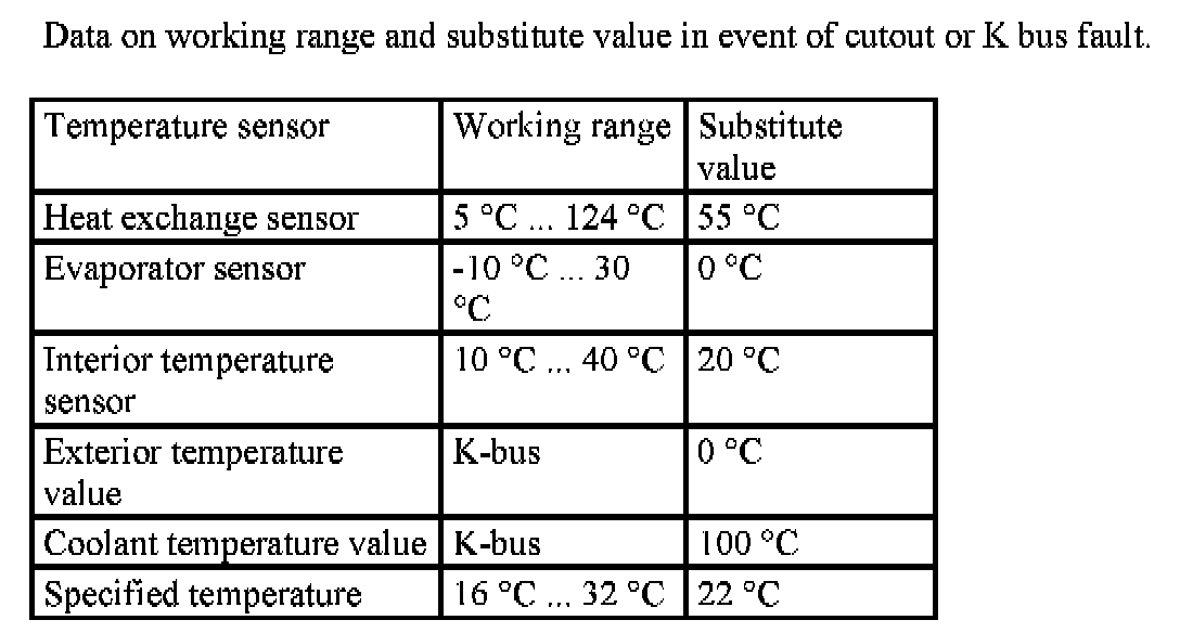 Specified and Substitute Values of Temperature Sensor