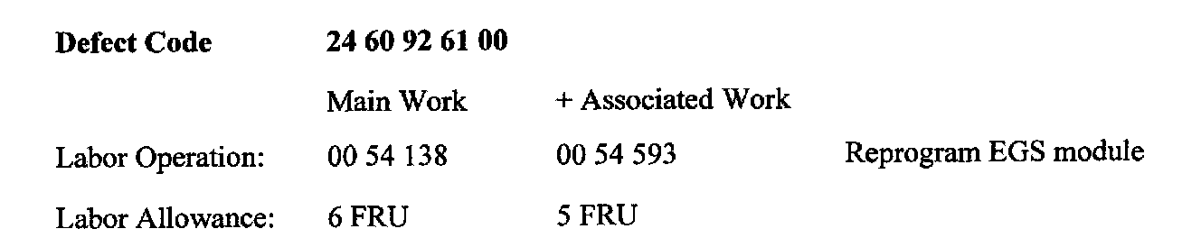 On a customer complaint basis only, reprogram EGS control module with DIS/GT1 CD 33.0 1st update, or higher, using a manual determination for the basic and the programmed control module part numbers.